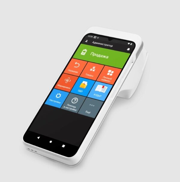 Дисплей: 6.5”, 720 x 1600, 320 DPI. ОС: Эвотор ОС 5 (Android 10). Память: ОЗУ 2 ГБ, ПЗУ 32 ГБ, слот MicroSD до 128 ГБ. Принтер: Термический, скорость 70 мм/с, лента 57 мм. Сканер: 1D/2D штрих-коды. Связь: Wi-Fi, Bluetooth 5.0, 1×USB-C. Интернет: nano-SIM + eSIM (предустановлены МегаФон, Билайн, МТС, Теле2, СберТелеком, NextMobile). Питание: Аккумулятор 2600 мАч, работа до 12 часов. Оплата: Прием карт (чип, NFC, магнитная полоса), платежные стикеры, Mir Pay.